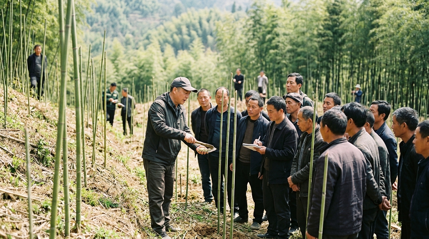 - 林地清理与垦复: 专家详细讲解了如何清理竹林内的杂草、乱石及残余竹头,以减少养分竞争,改善林内通风透光条件。同时,强调了浅垦对促进竹鞭伸长的重要性。