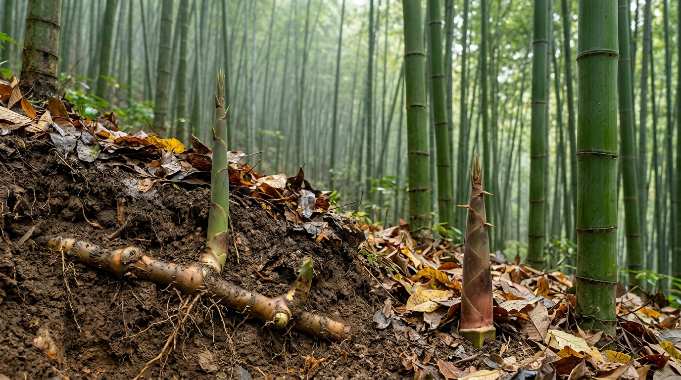 - 能量回馈:此前生长所需的能量主要由母竹通过地下茎输送,而现在,新竹已经可以产生碳水化合物,开始通过竹鞭反哺整个竹群。