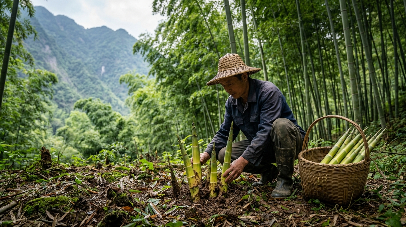 方竹属于“秋发型”竹种。从植物生理学角度看,方竹的地下茎(竹鞭)在春夏季节进行营养生长,积累能量。当进入8月下旬至10月,高海拔地区的气温率先下降,这种冷凉的气候信号触发了方竹芽萌发的开关。如果将其移栽到低海拔或温暖地区,方竹往往会出现生长不良甚至不发笋的现象。正是这种对高寒、湿润气候的依恋,决定了方竹笋只能成为“秋季限定”的珍品。